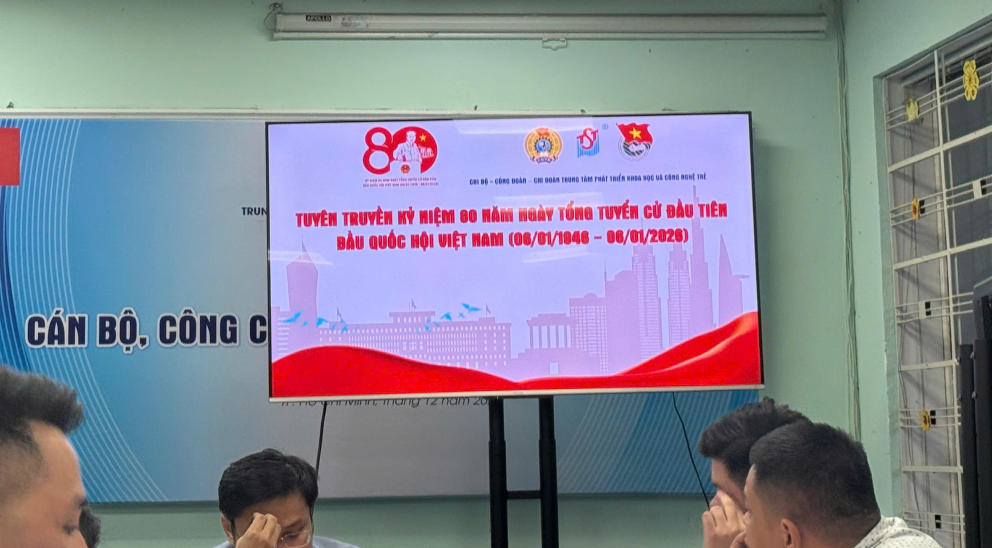Nhằm thiết thực chào mừng các sự kiện chính trị quan trọng của đất nước, ngày 06/01/2026, Chi bộ – Công đoàn – Chi đoàn Trung tâm Phát triển Khoa học và Công nghệ Trẻ đã tổ chức buổi sinh hoạt chuyên đề với nội dung tuyên truyền, ôn lại ý nghĩa lịch sử 80 năm Ngày Tổng tuyển cử đầu tiên bầu Quốc hội Việt Nam.
